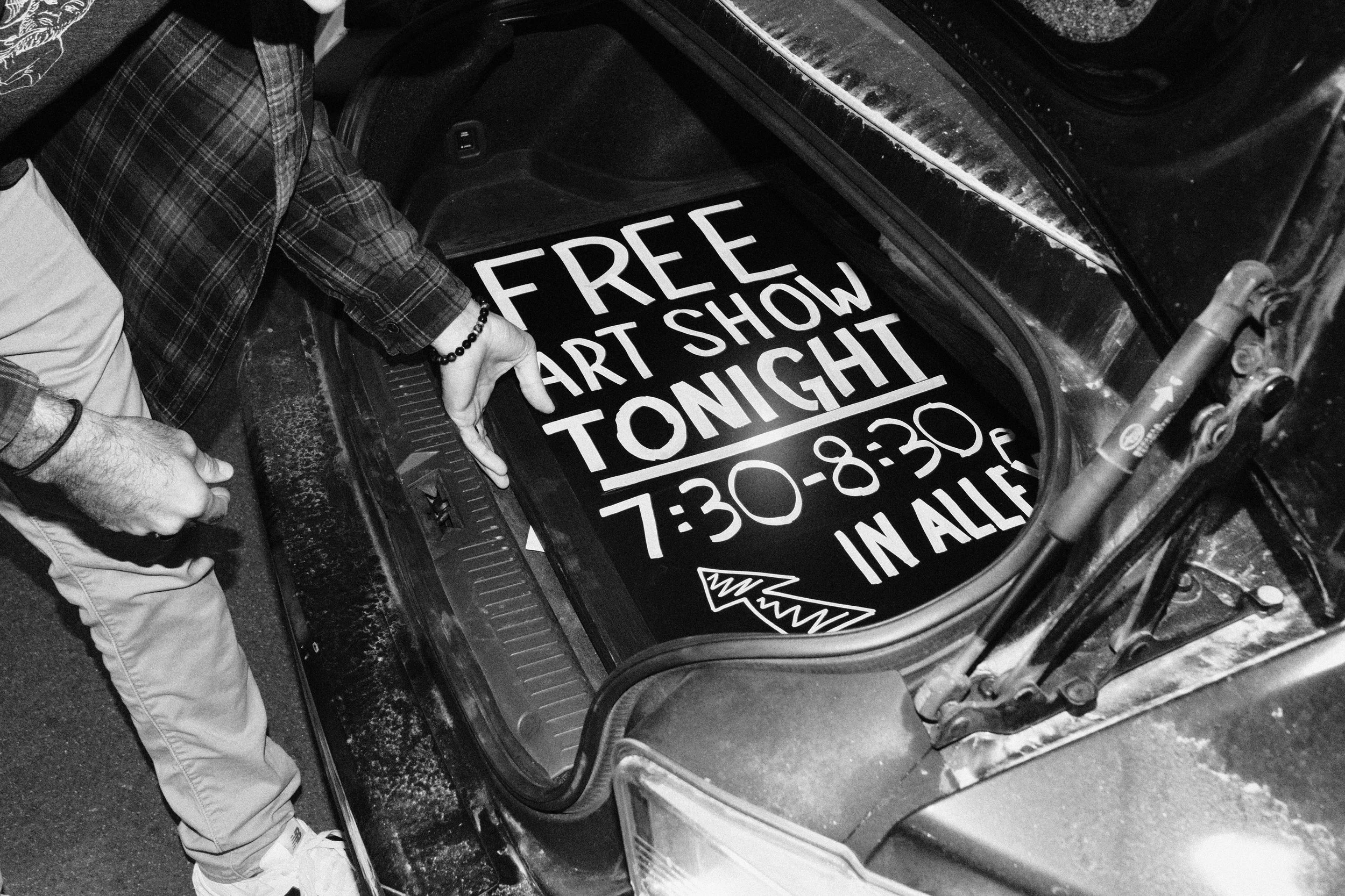 The morning of the show I planted my car as close to the alley well before the nightmarish farmers market traffic became a factor as it always does around midday. At the show there were a few of the Heart Members, a couple of the Medium Collective friends who were in the show, and a handful of other photographers and friends, some in the show, some just there to support. We set out sandwich boards on either side of the street fair directing people to the alley for an “art show” and a few people came through from reading those and there were also just random cars and passersby who came through. Some stayed for a bit, others walked right through without raising an eyebrow. It was hard for me to sit and watch because by the time we pressed play for the first time publicly I had seen some version of the show at least like 20-30 times while editing, but I got to watch my friends see it and soak in their reactions. Like the cheers that followed when the first images started coming up, and Mark (Heart member) proclaiming almost instantly, “we can make a book right now!” which by the way, is a very accurate statement.